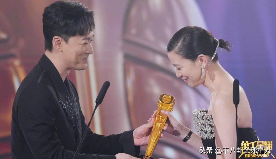 給佘詩曼頒獎的還是林峯,兩人是同時期的小花小生,佘詩曼已經是“三屆視後”,林峯還沒拿過一次視帝。