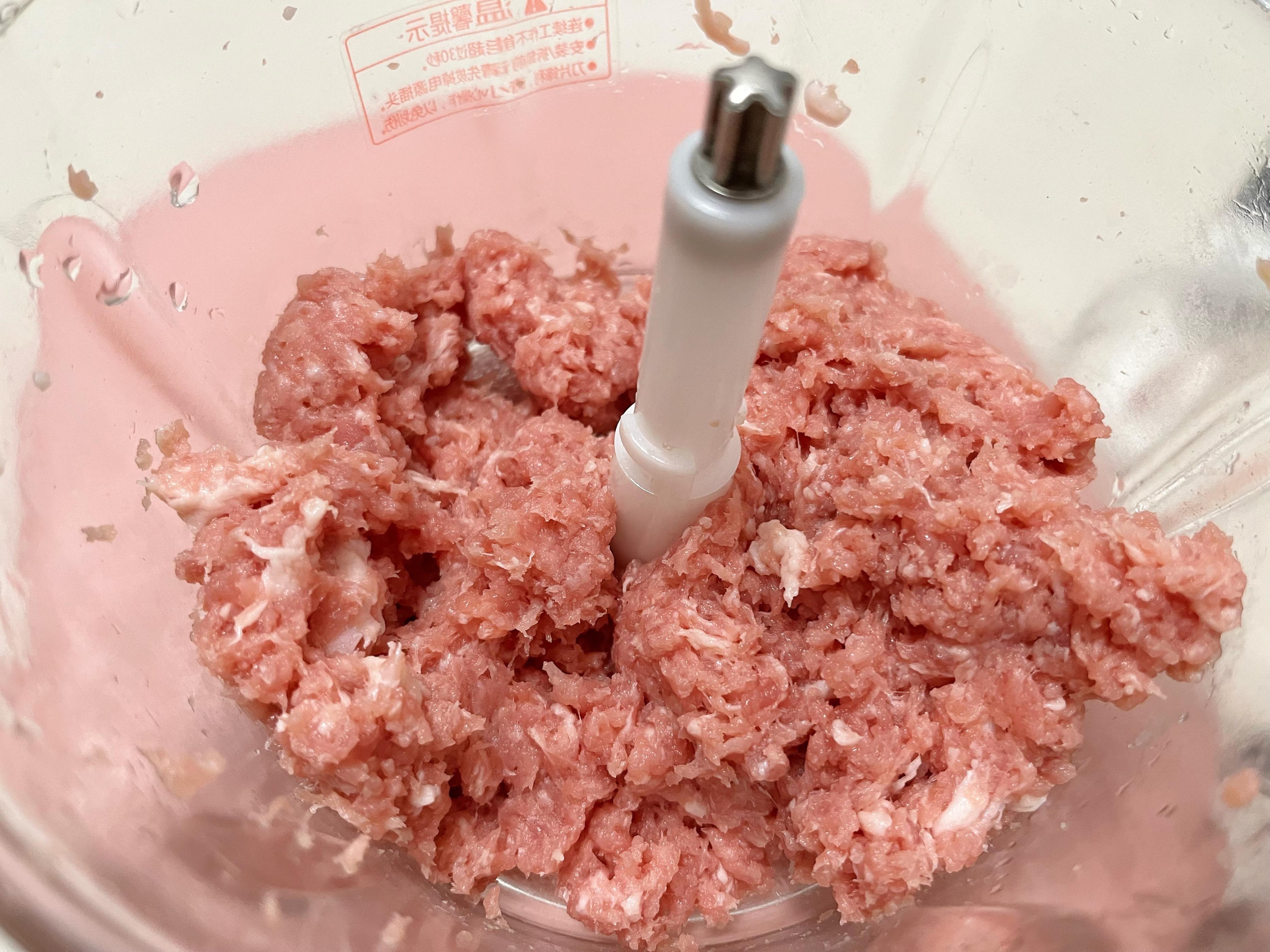 1、準備些豬梅花肉,洗淨切小塊,放入攪拌機中攪打成肉餡;