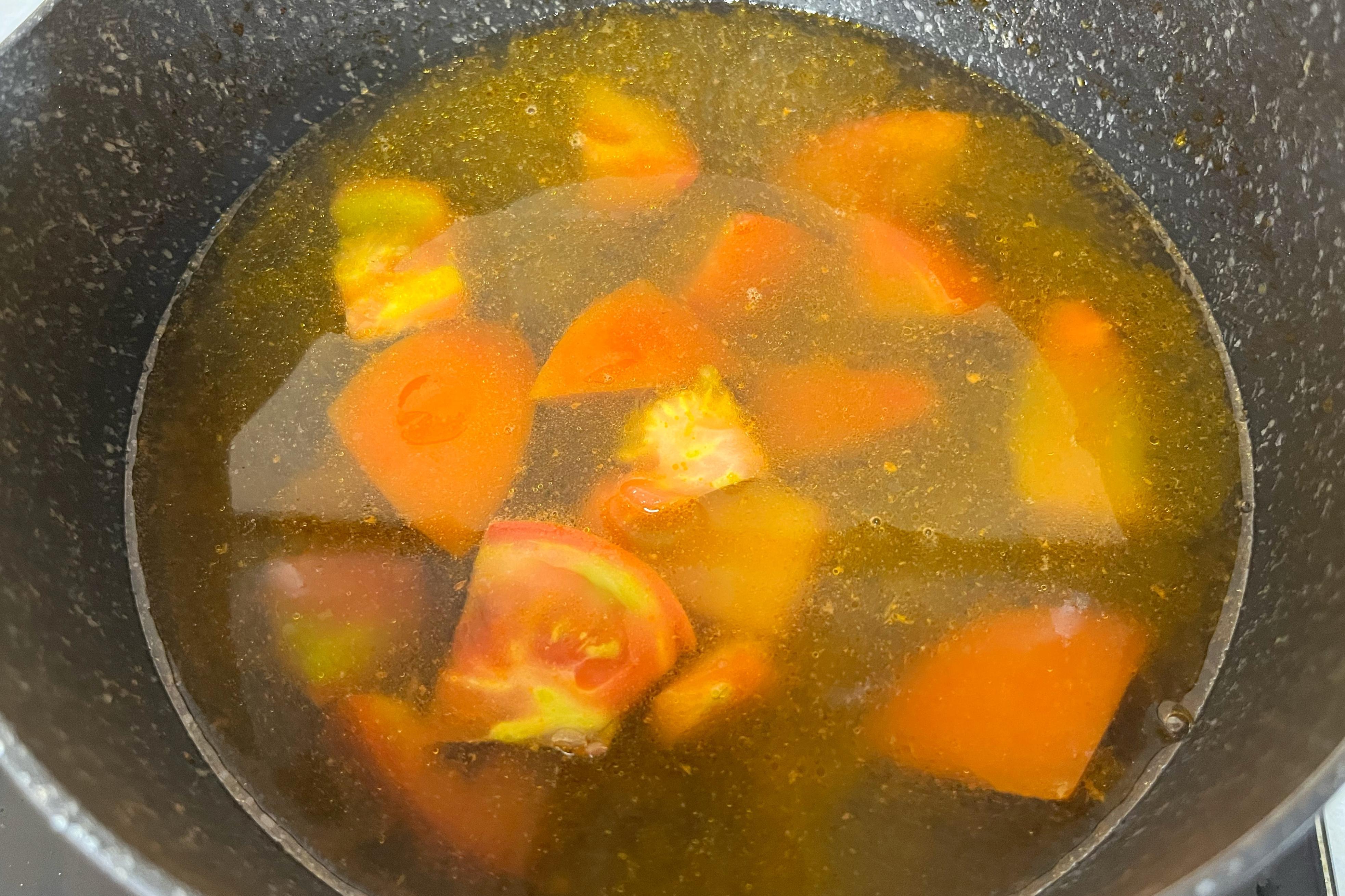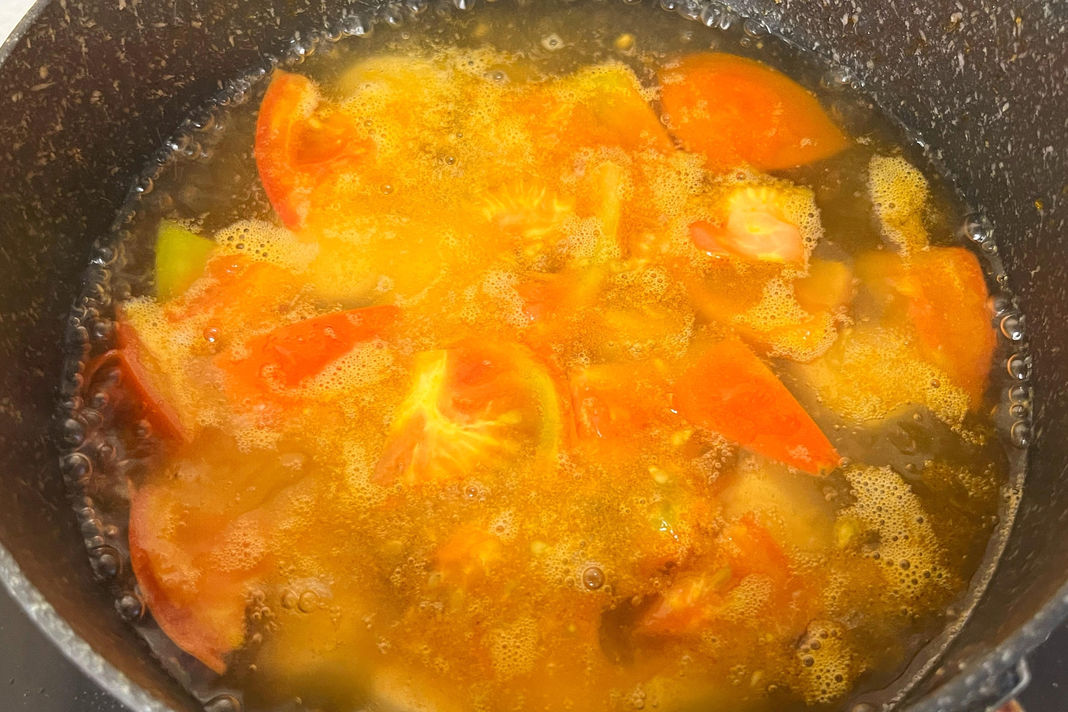 1、西紅柿洗淨、切滾刀塊,下油鍋煸炒出汁;