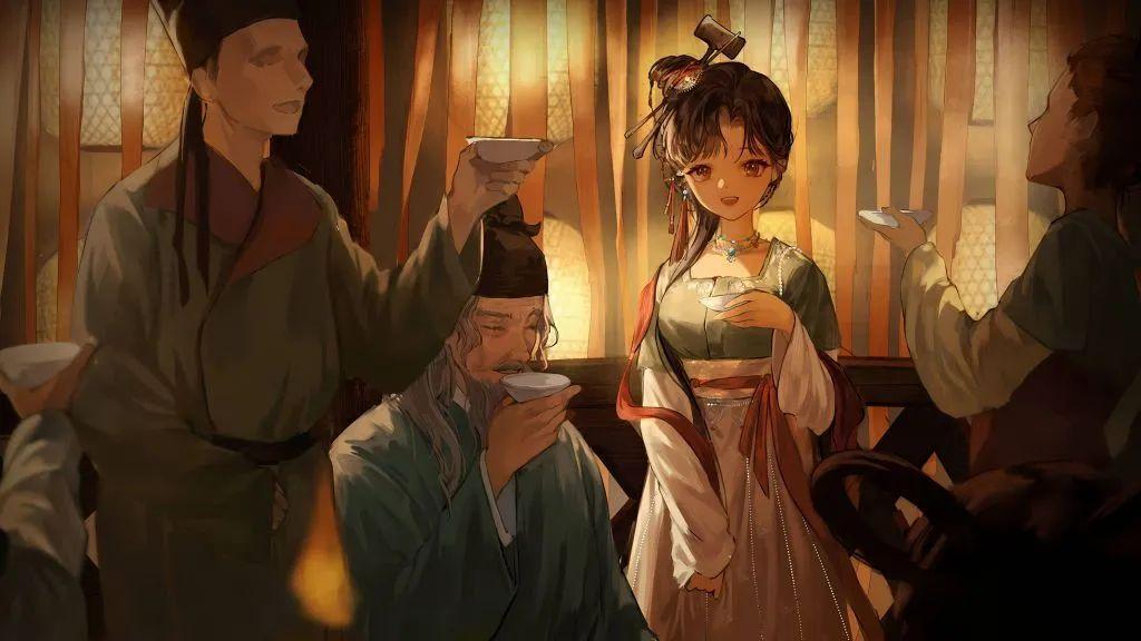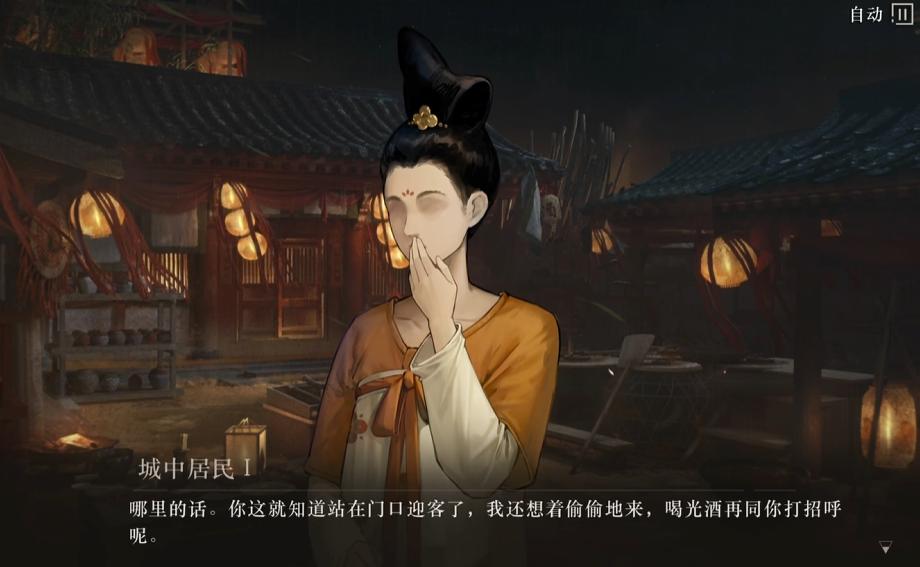 舉個例子,唐人物畫多數爲絹本,多使用更柔軟細膩、圓潤流暢的線條。在《朔日手記》中,沛城本土角色的美術質感就明顯比“外來客”更“輕”,甚至會在CG中用到更多的減筆畫法,這點在劇情主角曲孃的作畫上體現得尤爲明顯。