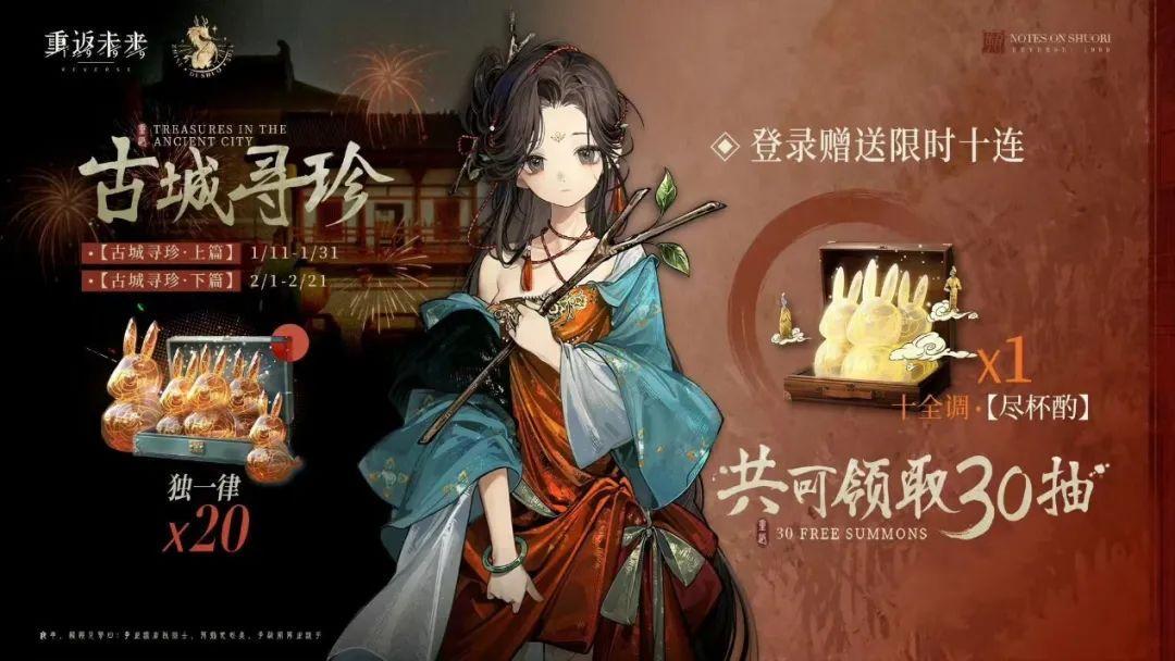 作爲玩家們期待已久的國風新春版本,1999在1.6的更新內容量和福利力度都堪稱充足。除了原本就量大管飽的內容更新之外,《朔日手記》還總計贈送了共計30連抽及除夕簽到福利,推出《黃粱一夢歌》國風主題皮膚,其中更是將六星角色李安安的皮膚直接登錄即送。