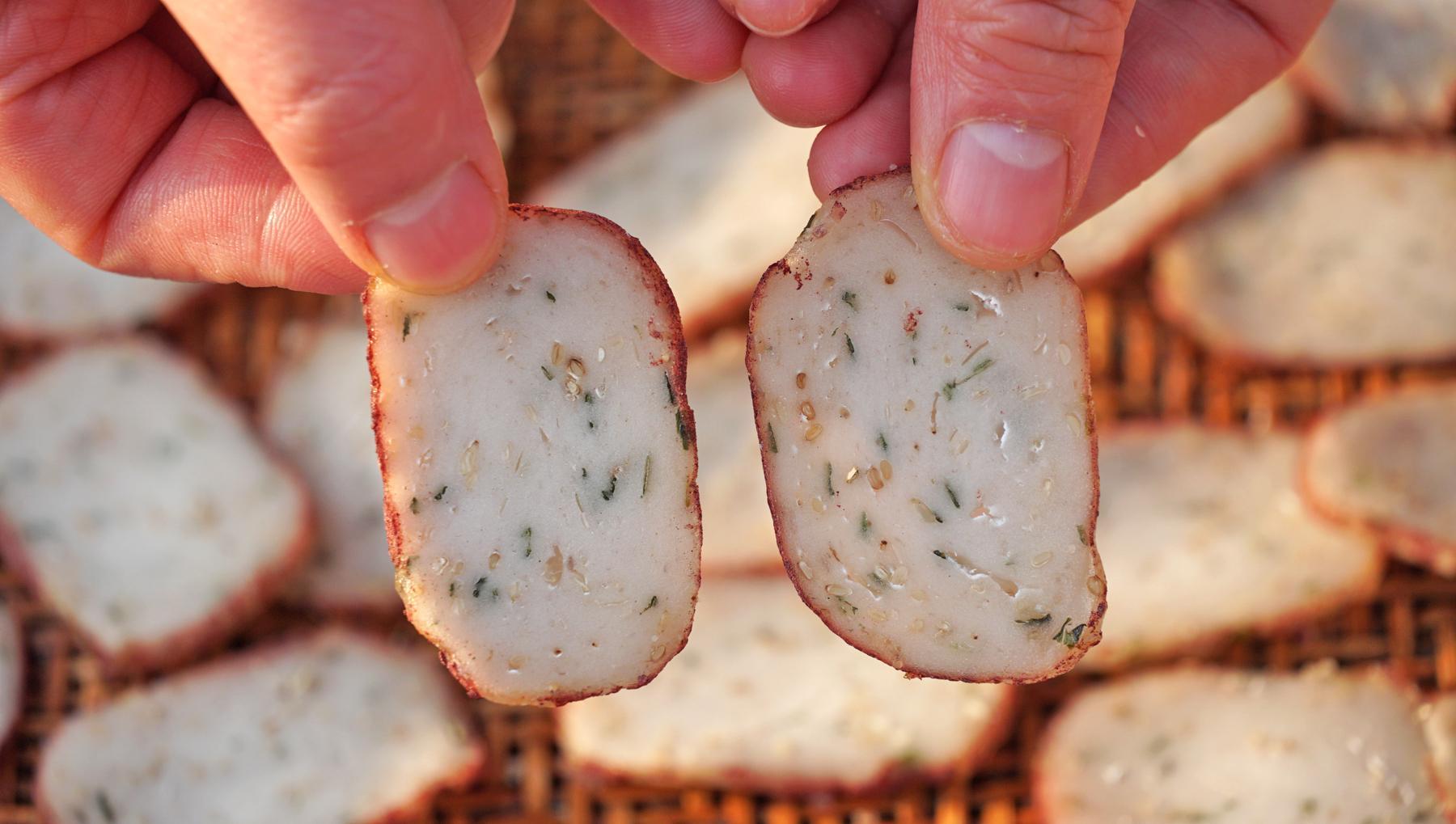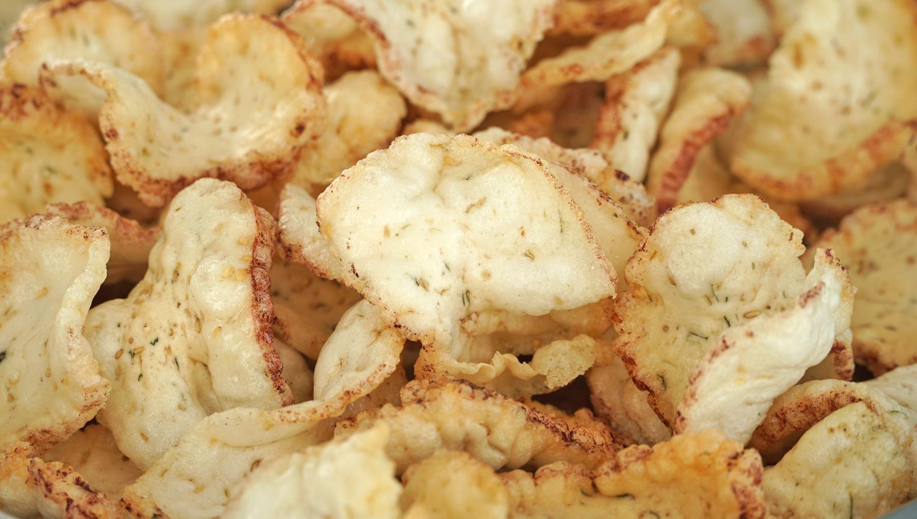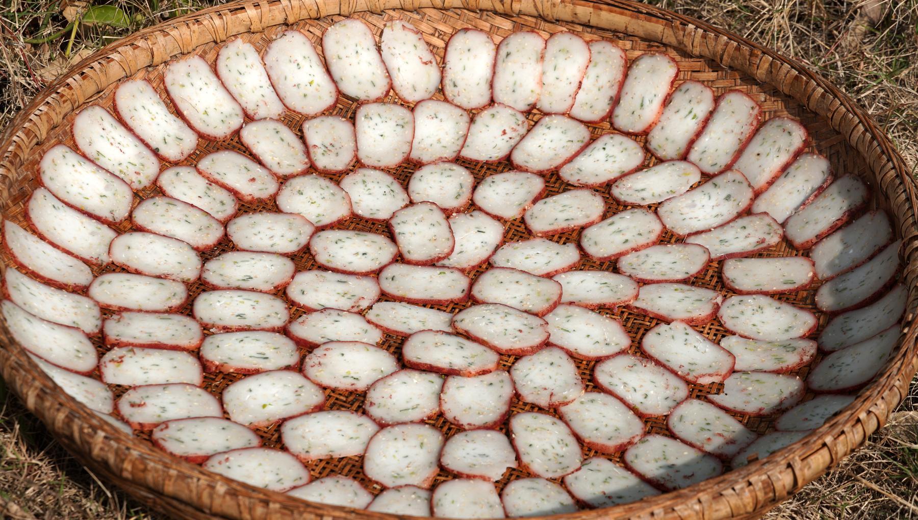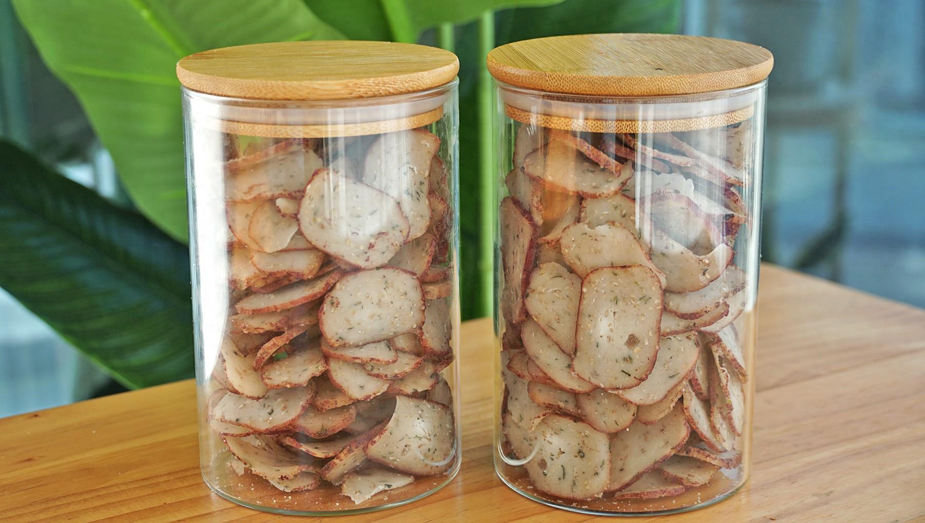 芋頭是芋蘭片的主角,蒸熟後的芋頭搭配木薯粉,經過先煮後曬的製作,口感上瞬間就變了個花樣,喜歡喫甜口的可以放糖,喜歡喫鹹口的可以放蔥花,無論是哪一種口味,都是深受大家的喜愛,酥脆可口,越喫越香。