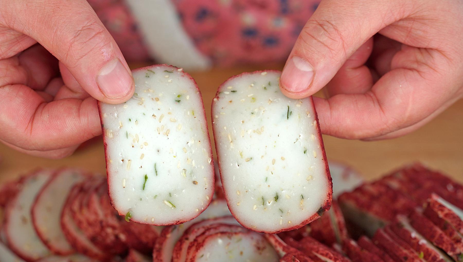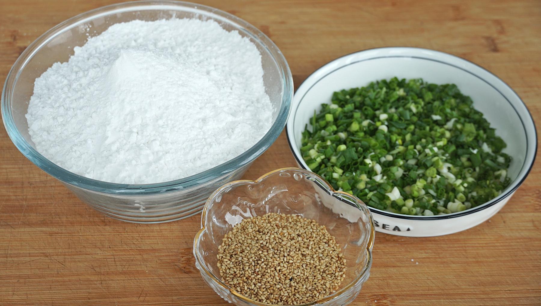食材清單:芋頭、木薯粉、紅曲粉、蔥花、白芝麻