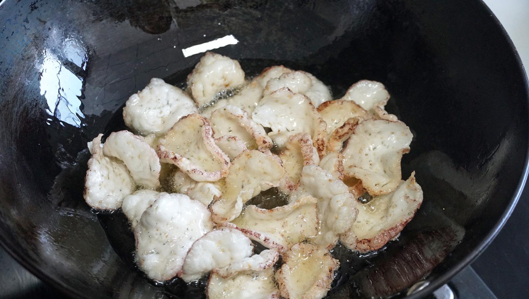 1、喫的時候抓一把下鍋炸,油溫升高後轉小火,然後丟進去炸。