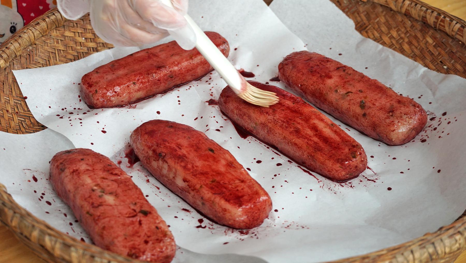 6、再用刷子給麪糰刷勻上色一面幹了再翻面刷另一面,可以多刷兩遍,顏色會更紅潤,接着就是晾乾了。
