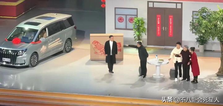 小品中的人物也很簡單,一對年輕人扶着一個老大爺,一位看着像長輩的男子怒氣衝衝地指着一箇中年男人,但沒想到被指着的人表演了一段“科目三”。