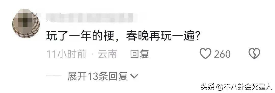 也不怪網友不接受,以往都是春晚小品造梗,可是現在的春晚小品越發無聊,要麼直接搬運網絡熱梗,要麼無聊透頂,還帶着教育意義,不由地讓人懷念曾經的春晚所製造的“爆梗”,有很多現在都不會過時。