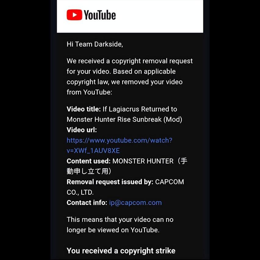 在上傳視頻的幾天前,卡普空就給《洛克人EXE》合集實裝了Enigma Protector。上傳視頻兩個月後,知名《怪物獵人》速通與內容創作團隊Team Darkside表示,卡普空日本的法律團隊正在針對《怪物獵人:崛起》任何涉及模組使用的視頻發出下架請求和版權警告。