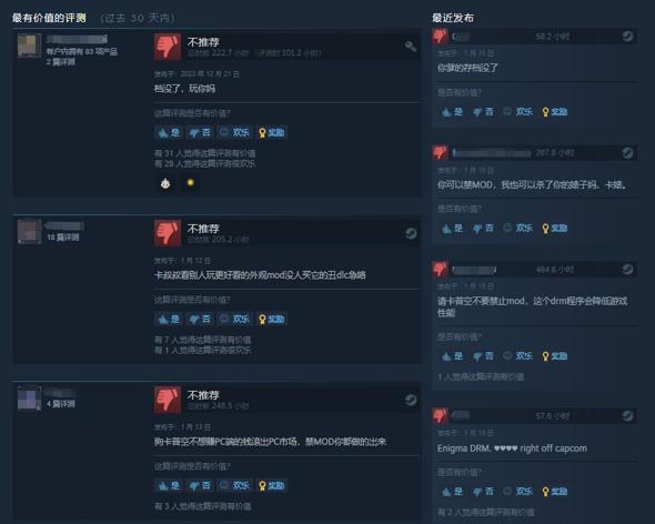 來自社區的差評警告,正在督促卡普空以更加理性和開放的態度對待模組問題,挽救模組作者的心血,以及卡普空的冷飯生意。