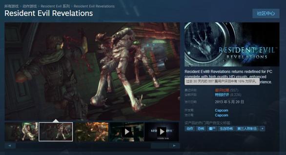 根據SteamDB網站的記錄,在2013年登陸Steam的卡普空老遊戲《生化危機:啓示錄》,突然於1月9日公佈了一個更新。這次更新將《生化危機:啓示錄》的30天內好評率拖到了18%。
