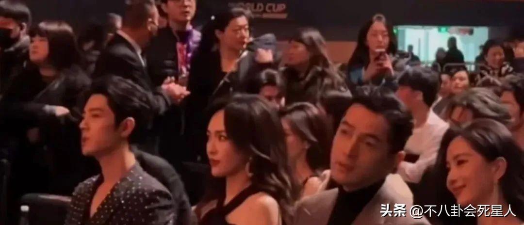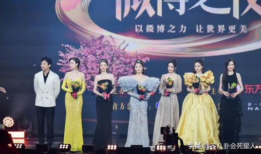 再來看看去年的微博之夜上,同樣是以胡歌爲中心,胡歌的右手邊坐的是劉亦菲,左手邊坐的還是劉詩詩,而劉詩詩身邊坐的是楊冪和楊穎。