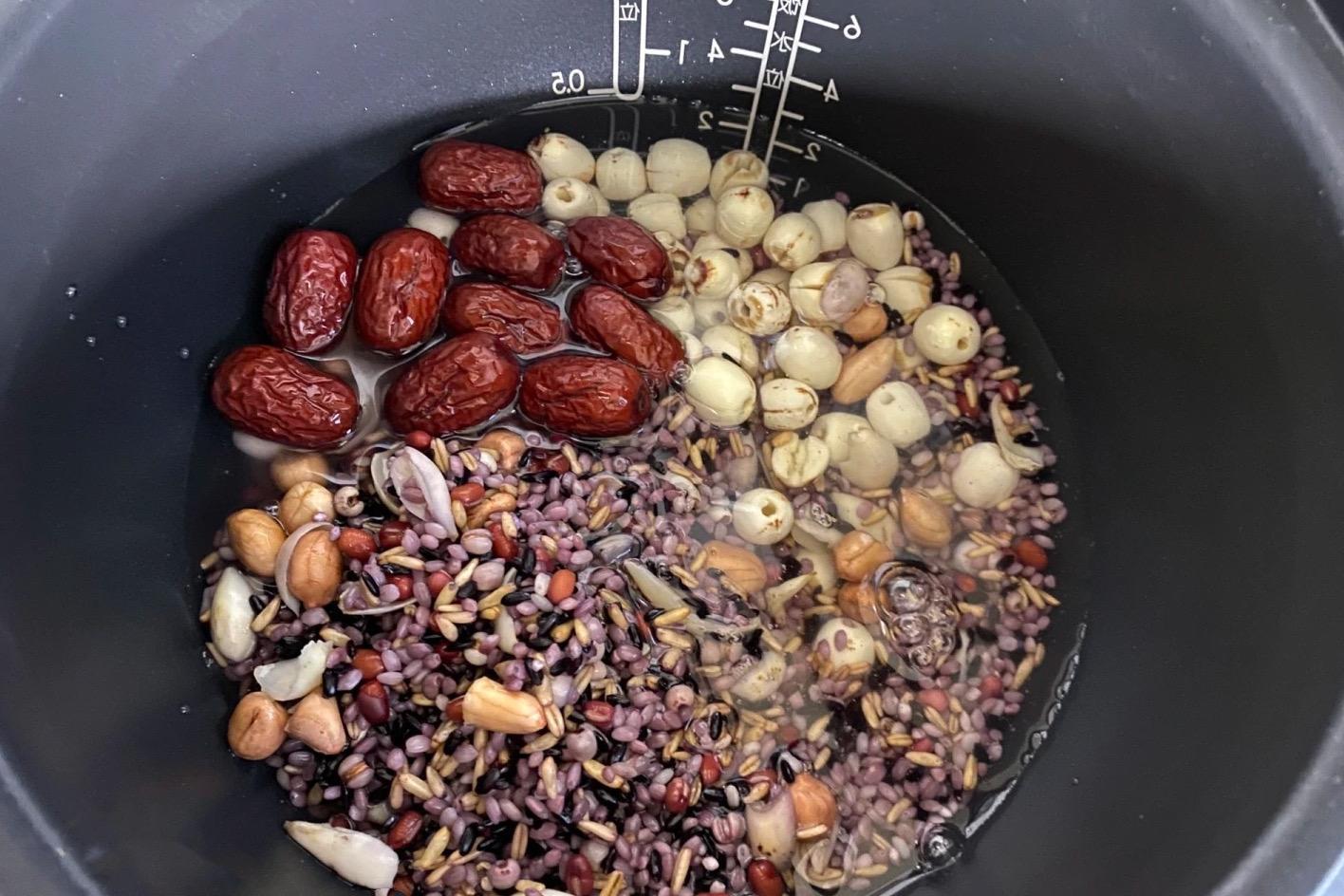 1、按照臘八粥“8樣5類”的講究,準備好熬粥食材,反覆清洗幾遍,處理好後一起放入鍋中,建議用高壓鍋,可以節約熬粥時間;