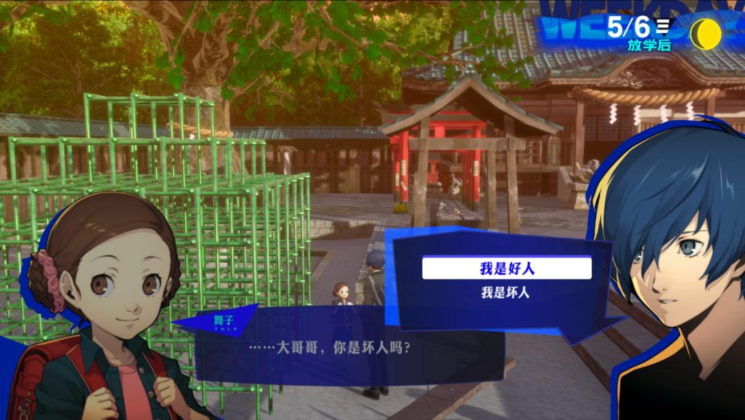 藉助這些優化,P3R補全了以往一些“看不到的東西”,大幅提升了遊戲的敘事表現力。譬如早在體驗P3時,“倒懸者”的社羣同伴舞子就給我留下比較深刻的印象。在破碎的生活環境下,她保留了孩童的“任性”,卻也學習着成年人的選擇與放棄。