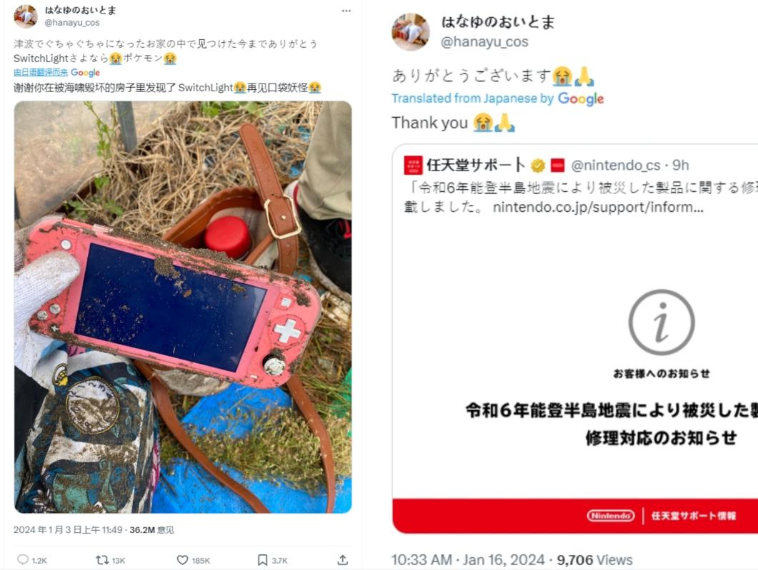巧合的是,此前有日本網友曬出了自己飽受海嘯摧殘的Switch,大量網友紛紛送上安慰,如今任天堂也算是及時雪中送炭了。