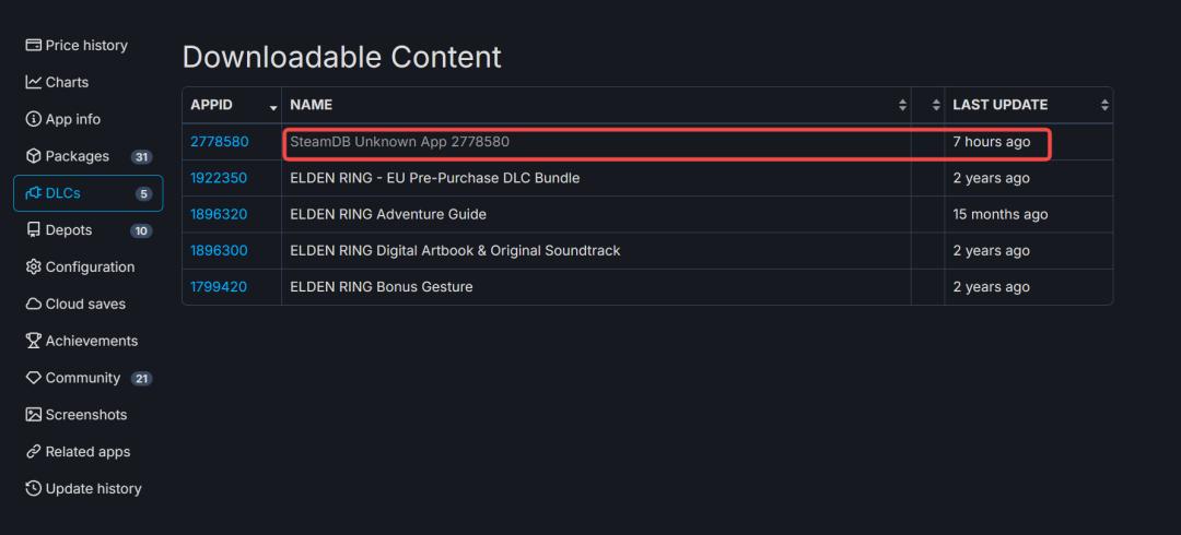 根據SteamDB網站的後臺記錄,《艾爾登法環》的DLC板塊新加了一項未知內容,令人不由得聯想到《黃金樹之影》。