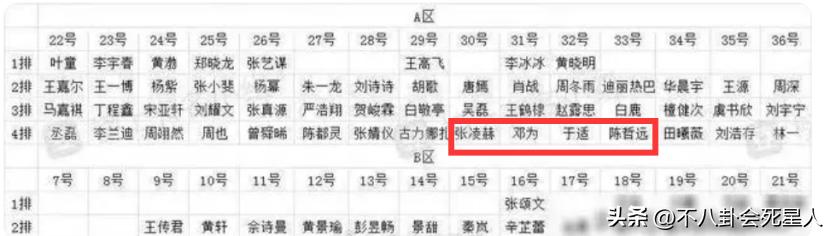 如今卻是陳哲遠、於適、鄧爲、張凌赫等新晉流量們同排而坐。