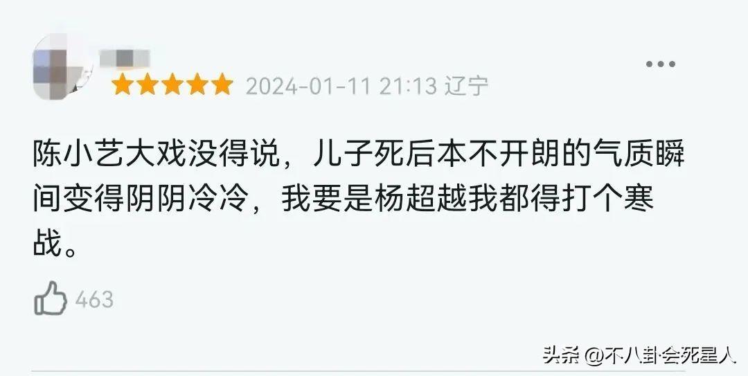 但陳小藝飾演的秀麗之後就將這種窒息的愛,轉移到了不受關注的女兒身上,監控她的一舉一動,不允許她戀愛,難怪有觀衆表示陳小藝這陰冷的氣質,自己要是楊超越都要打個寒顫。