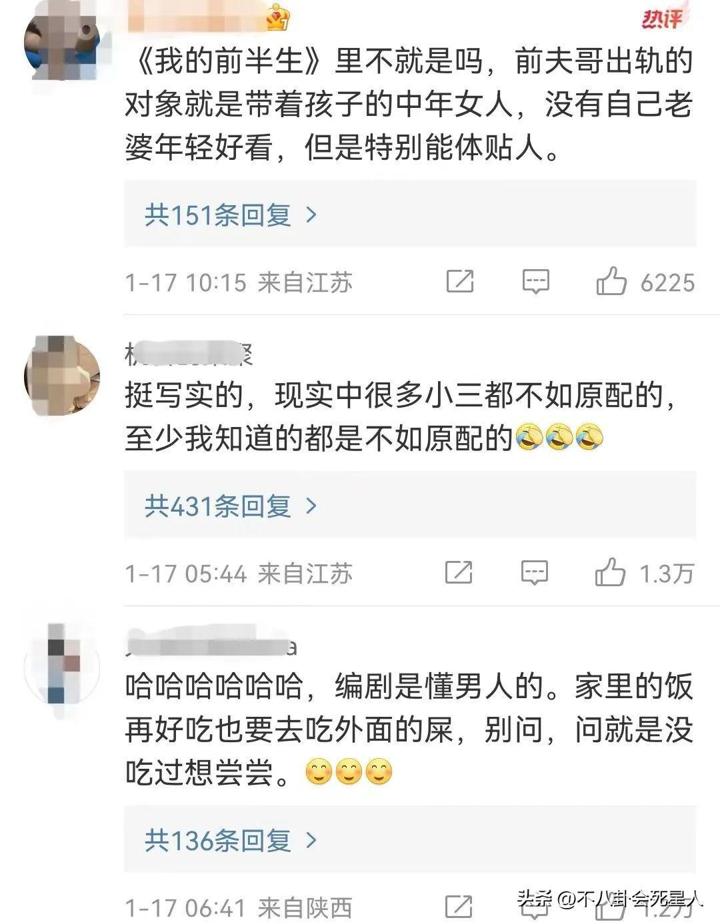不過有的觀衆表示,這一情節還真挺符合現實生活,因爲有很多小三就是不如原配,不知什麼時候起,國產劇裏小三的長相也開始“降級”了。