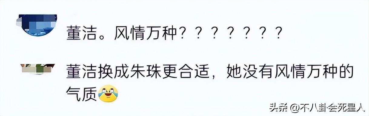 同時董潔在劇中也沒有演出情婦的韻味,跳舞像在跳老年迪斯科,“皺眉式”演技看起來很哀怨,因此許多網友覺得她和風情萬種完全搭不上邊。