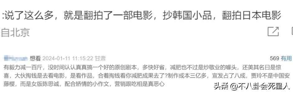 也有網友說,《熱辣滾燙》這部電影本來就不是原創,而是翻拍國外的電影。所以網友覺得,賈玲有毅力減肥100斤,卻沒時間認認真真搞一個好的原創劇本。