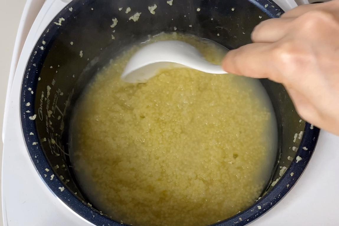 5、等小米熬成粥後,再加入南瓜泥,攪拌均勻後,繼續煮5分鐘,即可享用。