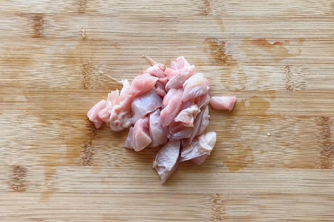 1、雞腿洗淨,用廚房紙吸乾表面的水分,再將雞骨頭去掉,雞肉切小塊;