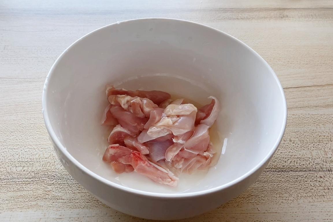 2、往雞肉中加少許料酒,抓勻後醃製15分鐘去腥味;