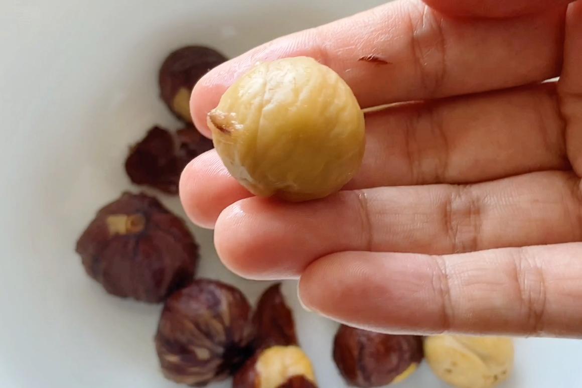 3、板栗洗淨,在板栗殼上劃幾道口子,涼水下鍋,水開後再煮3分鐘,然後撈出來過涼水,將板栗殼去掉;