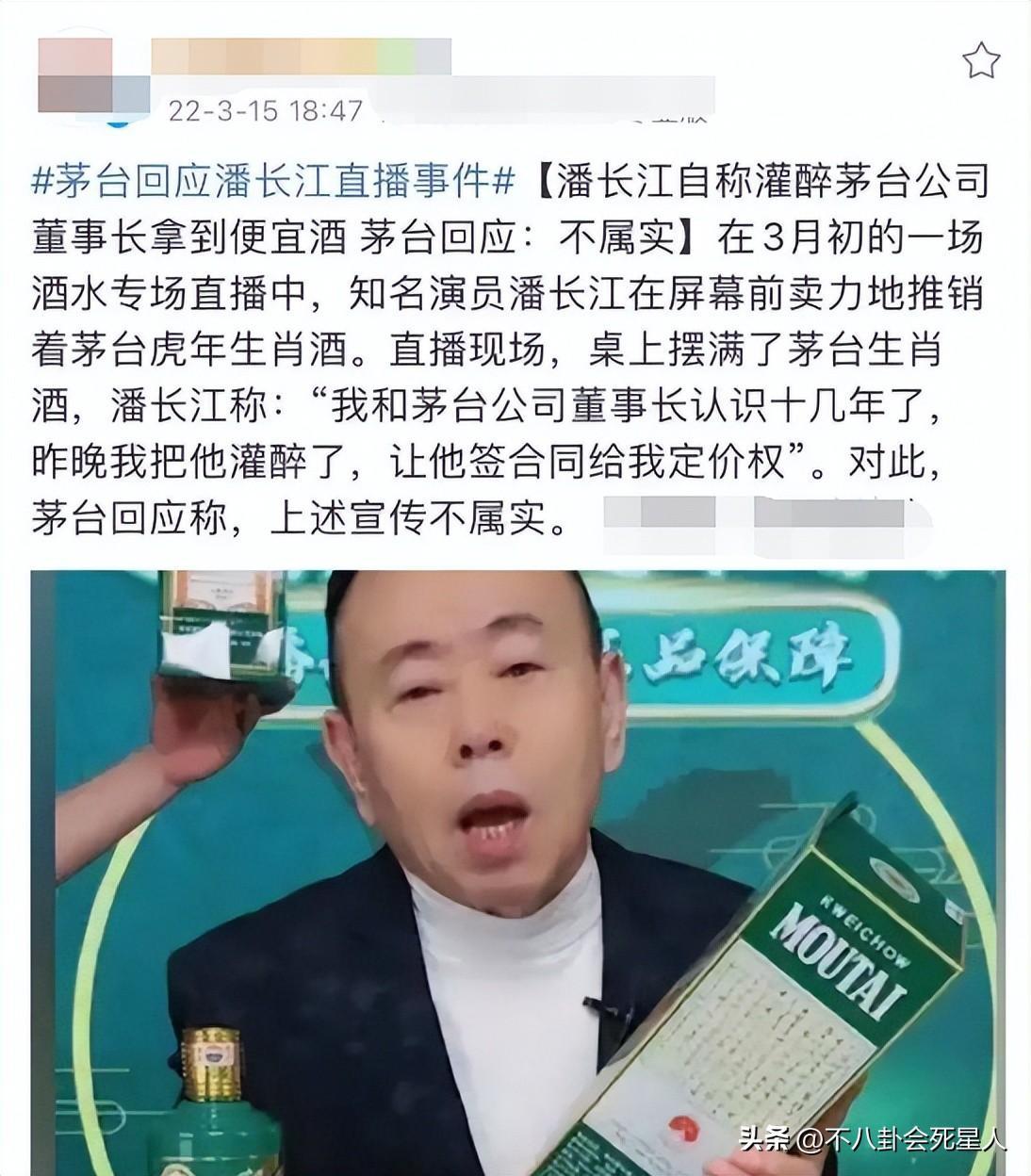 在兩年前的某次直播中,潘長江說出“灌醉酒董事長拿到生肖酒優惠價”,言語中暗指與酒官方關係過硬。
