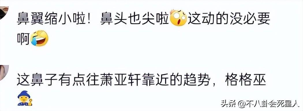 看到毛曉彤鼻子發生了巨大的變化,很多網友爲她感到可惜,明明之前挺漂亮的,如今得不償失,朝着“格格巫”方向發展,還有人說她這樣很像蕭亞軒。