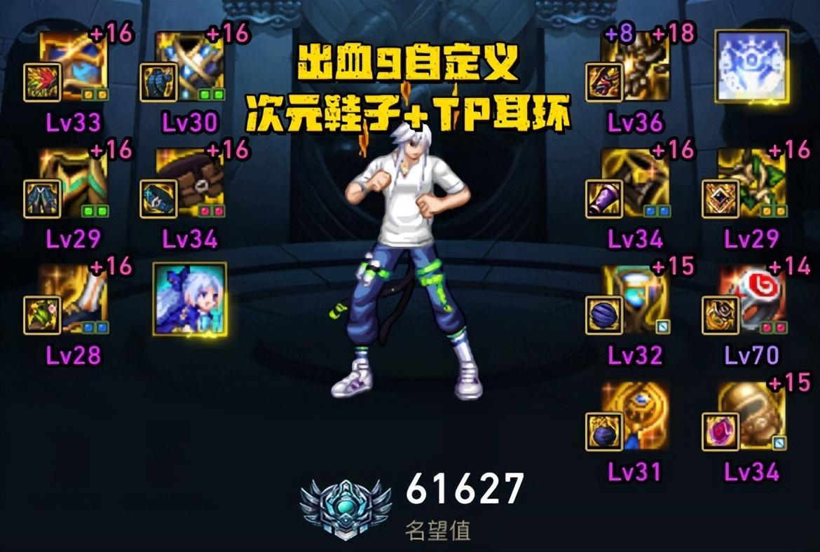 實際上和寶哥的“出血9自定義”差不多,主要是更換了次元鞋子+藍色耳環,主打一個TP技能加成。