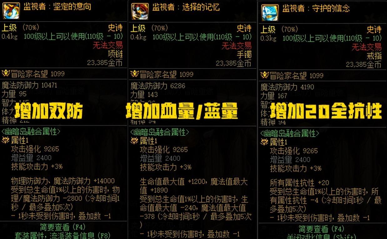 如手鐲增加血量/藍量、項鍊增加防禦、戒指增加20全屬抗,如果需求可以散搭一兩件。