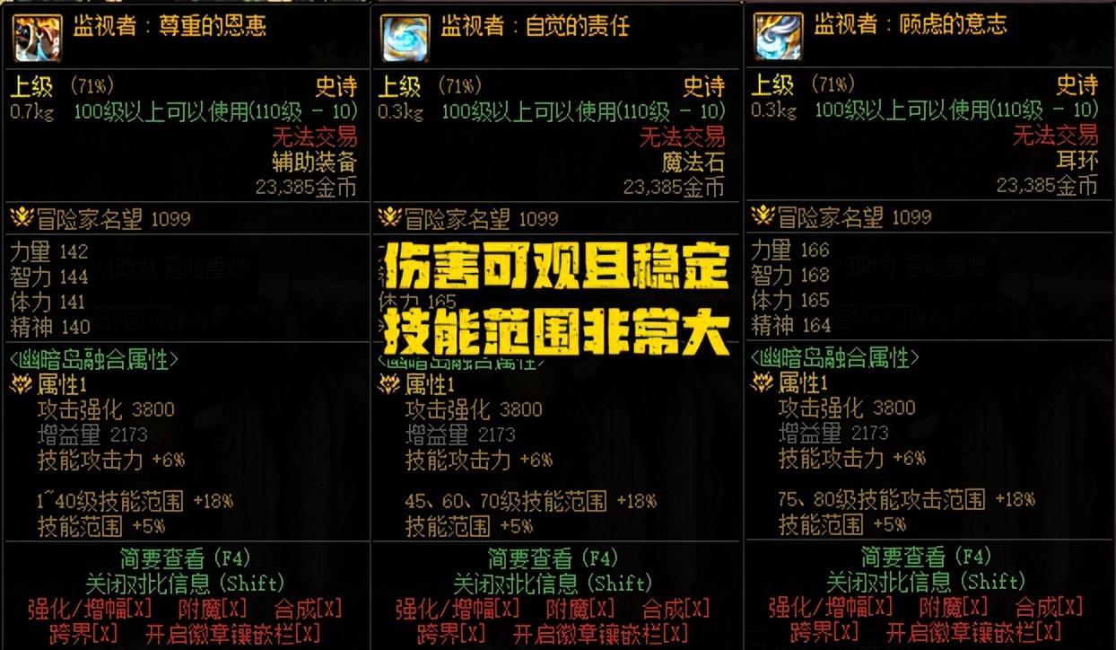 提升率低於孤島/無信系列,不過“監視者”特色在於,它提供了一定功能性詞條。