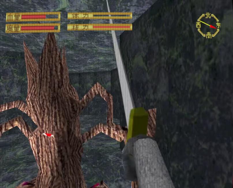 落實到實戰環節,詭異的傷害判定以及主角緩慢的移動能力註定了玩家的操作邏輯只能是等待敵人攻擊的間隙→上前砍一刀→馬上回撤→等待敵人攻擊的間隙如此循環往復,換個更常見的詞就叫“一擊脫離”,你打一下我打一下的即時回合制思路也被後來的魂系列玩家們完美沿襲。