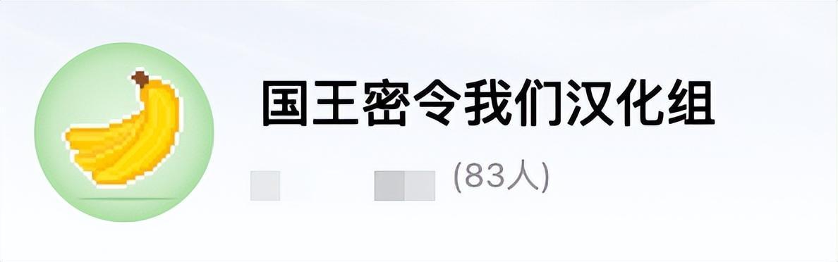 後來做《國王密令》漢化的時候,“香蕉王子漢化組”這個組名難免顯得有些出戏,在某個秋冬午後,一個奇妙的念頭在衆人腦海中一閃而過,組名也就索性改造成了如今的模樣,只剩羣頭像裏的香蕉還在回味FC時代由像素構成的童年。