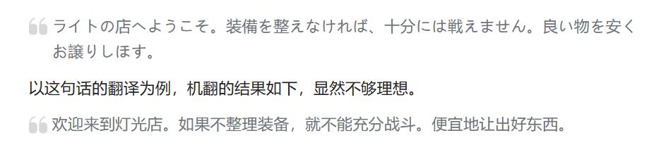 然而機翻註定與“一勞永逸”這個詞無緣,機器學習和人工智能翻譯出來的句子生硬難懂,缺乏連貫性,通常也不會結合遊戲背景潤色修飾,況且OCR工具的識別準確度也絕非100%,初版譯文的整體質量顯然不夠理想。