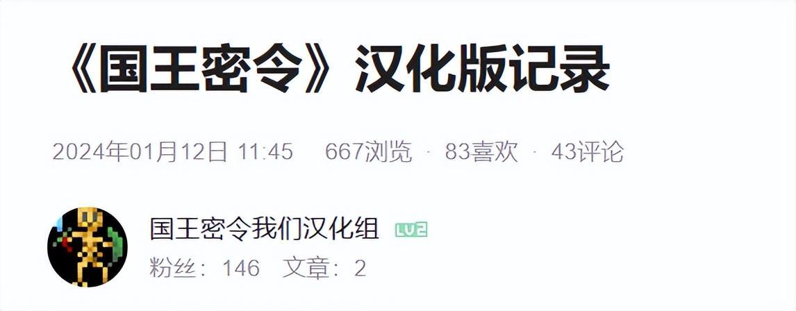 爲了能讓更多玩家接觸到承載着衆多意義的《國王密令》,2024年元旦,“國王密令我們漢化組”放出了遊戲的完全漢化補丁,遊戲裏一切非中文的文本對話及物品說明都以貼合原作風格的形式進行了還原,甚至遊戲開場那段莫名其妙的3D CG動畫也採取了本地化處理,用心程度可見一斑。