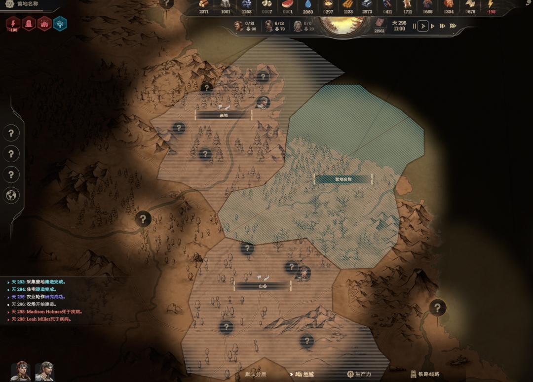 而如果城市達到一定規模,就要考慮與外界的交流——本作中外界僅作爲探索和資源來源要素存,在遊戲中玩家需要建立前哨站,派人去各個地區探索,獲取不同地區信息,與外界建立貿易聯繫。如果可以辦到,在礦藏資源耗盡前建立鐵路,以此作爲資源獲取的來源。