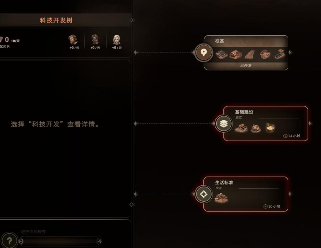 爲了達成這樣的發展,遊戲一方面以人口積攢科技點解鎖新設施和資源,又以聚落規模、人羣需求向玩家有節奏地開放科技樹,助力及提示玩家升級自己的聚落。