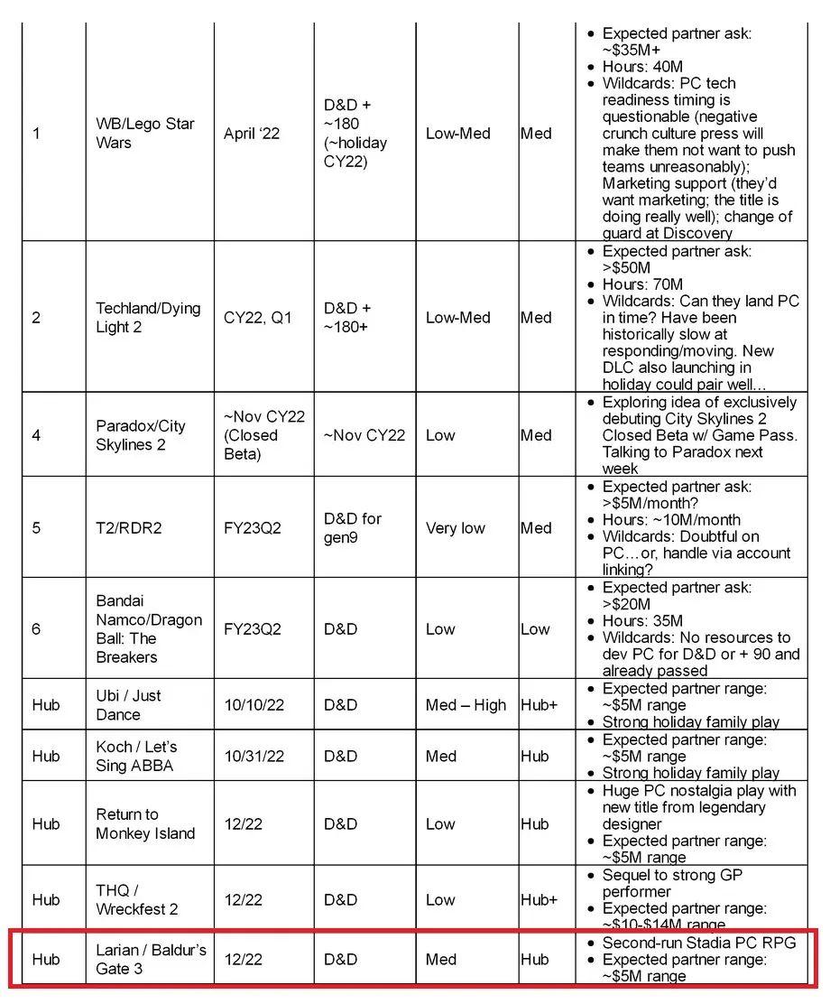 或許有人會認爲,文克對訂閱制的抵制,多少帶點個人恩怨。去年《博德之門3》發售後不久,一封微軟在2022年5月發送的電子郵件遭到泄露,其中包含微軟對即將推出的遊戲評估,而對《博德之門3》的評價爲“中等”(Med),排在這份清單的最後一名。
