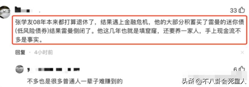 雖然有粉絲出來爲他澄清,稱08年金融危機張學友損失慘重,所以他現金流不多又要家人,但立馬就有網友說即使不多也是普通人一輩子難賺到的。