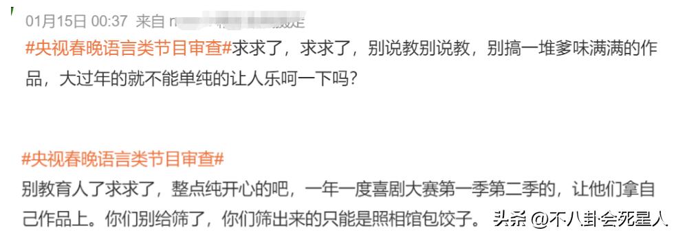網友對央視春晚的不滿最重要的原因是,覺得近年春晚的小品“教育”的部分太多,或者是煽情部分太多,再也沒了之前搞笑輕鬆的氛圍,觀衆也不笑了。