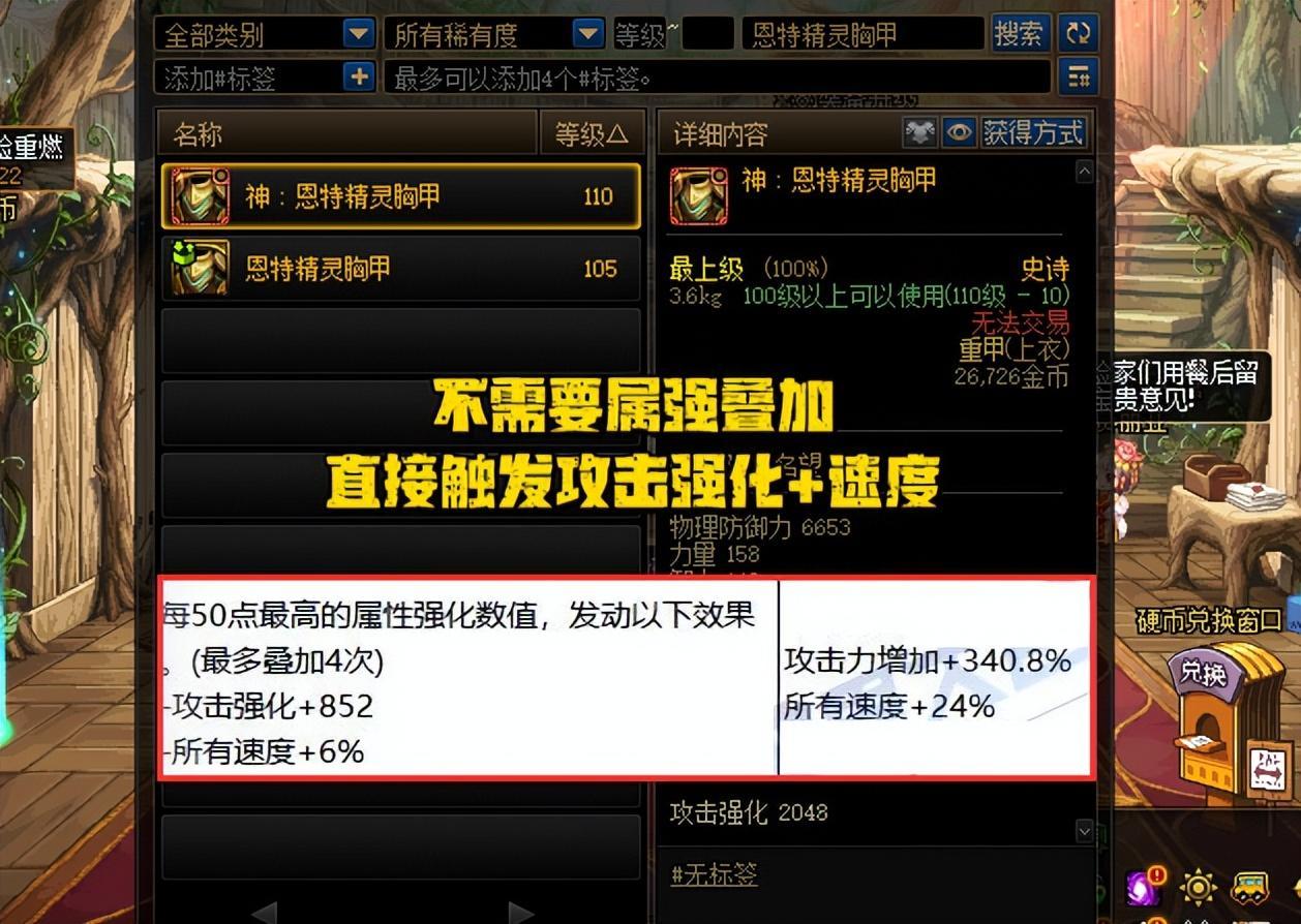 【2】恩特上衣,改版前“根據屬強增加852攻擊強化、6%速度,可疊加4次”,改版後“攻擊力增加340.8%,速度+24%”。