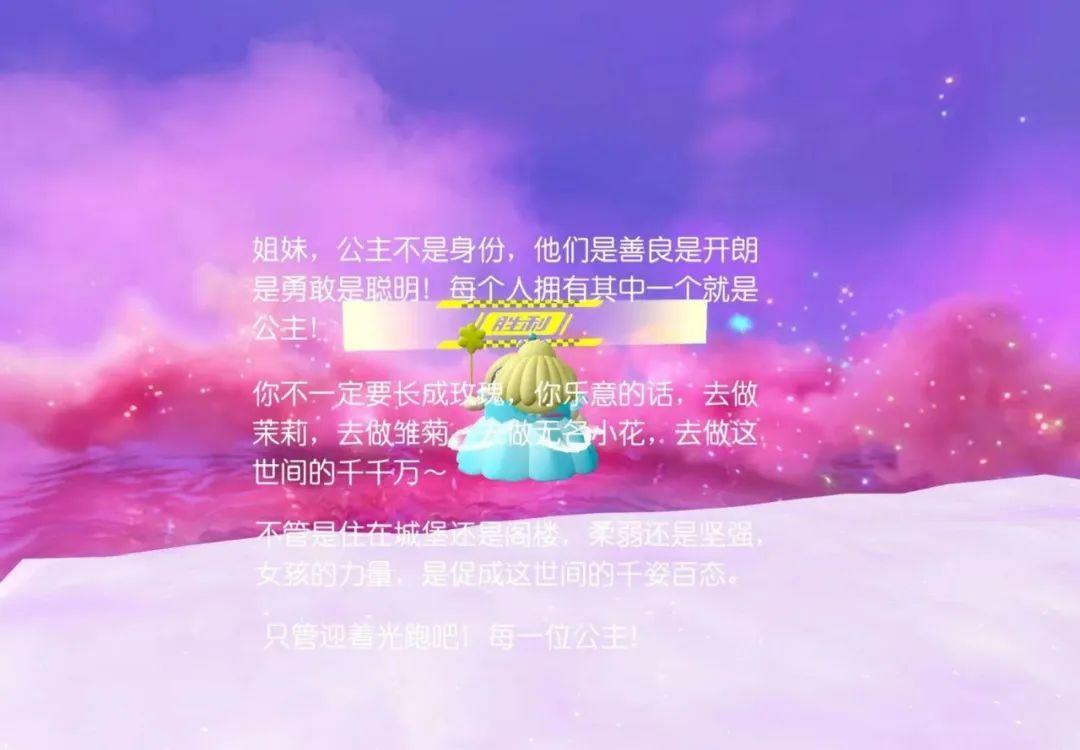在這樣的全民創作、全民遊玩、全民傳播的樂園氛圍中,想要更爲出衆,地圖創作者自然而然就會在作品中更多融入自己的創意和思考,以求與遊玩者達成更深層次的共鳴。以熱門高贊地圖《重生之我是公主蛋》爲例,玩法層面有豐富的穿搭換裝供選擇,美術層面有華麗壯觀的巨大城堡供欣賞,到最後的通關界面,只留下幾行字告訴玩家——公主不是身份裝扮,而是內在的美好品質。