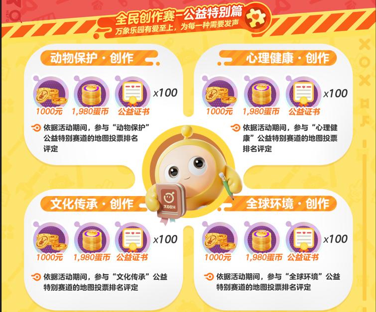 與此同時,遊戲本身也在積極響應、推動這一趨勢。“全民樂園狂歡”中,便設有專項公益內容賽道,鼓勵玩家嘗試相應主題的公共議題內容創作——這也是《蛋仔派對》“國民性“另一維度的具象展示。