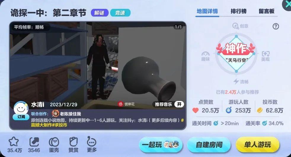 想要尋求刺激,感受一下腎上腺素飆升的體驗,懸疑、怪談類地圖也是《蛋仔派對》UGC創作生態中的熱門品類,學校、醫院、列車、老宅、林中小屋等等故事背景題材可謂應有盡有。誇張點來講,曾經論壇時期風靡一時的“蓬萊鬼話”於此文藝復興,只不過內容創作的載體從懸疑文學變成了代入感和沉浸感都更強的遊戲。