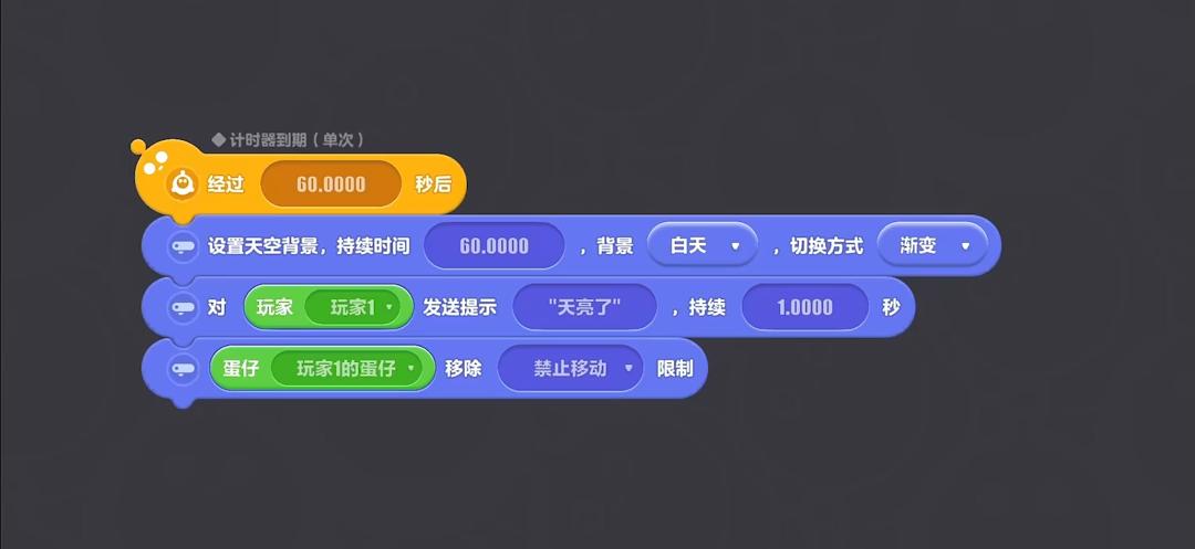 關於前者,一個最直接的解題思路叫做“工欲善其事,必先利其器”。蛋仔官方從一開始就爲玩家提供了大量易用的編輯工具,且還對這些工具持續迭代升級,不斷優化玩家的創作體驗。像此前重磅推出的“蛋碼”,就讓玩家能夠像拼積木一樣將“事件”“動作”“條件”等語句拼到一起,用一種極容易理解的方式輔助玩家編寫地圖邏輯規則。