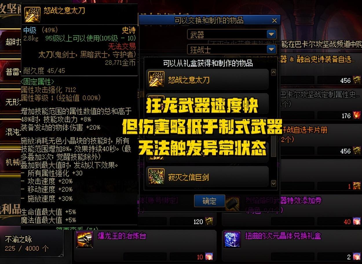 這裏的爭議點在於,狂龍武器雖然速度更快,但極限傷害略低吞噬武器,且部分玩家還需要邪龍武器觸發異常,這也是個問題。