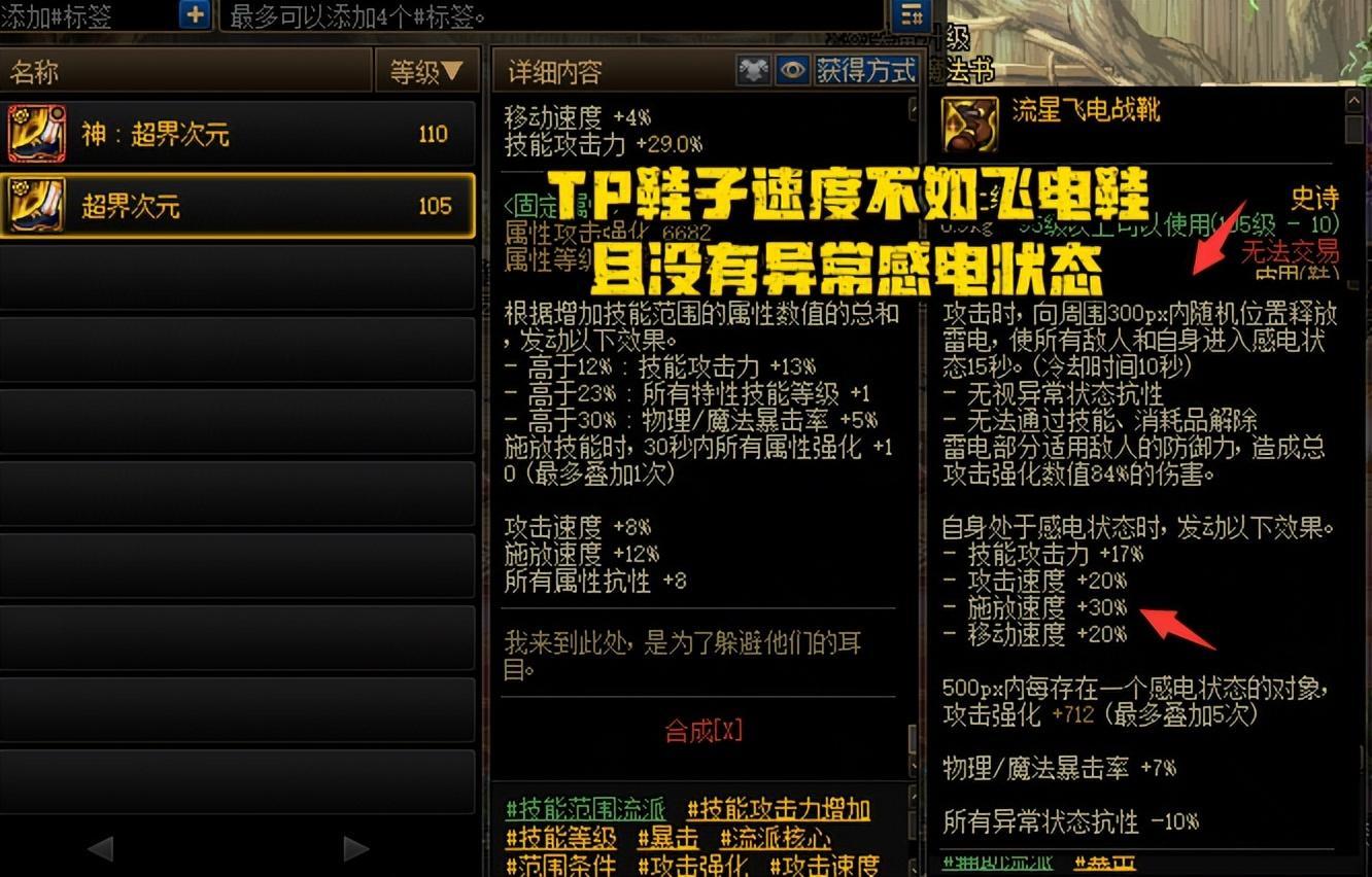 但需要注意的是,爲了觸發“藍色耳環”的TP6技攻,我們需要搭配超界次元鞋子,也就是俗稱的“TP鞋子”,所以實際對比應該是這樣的: