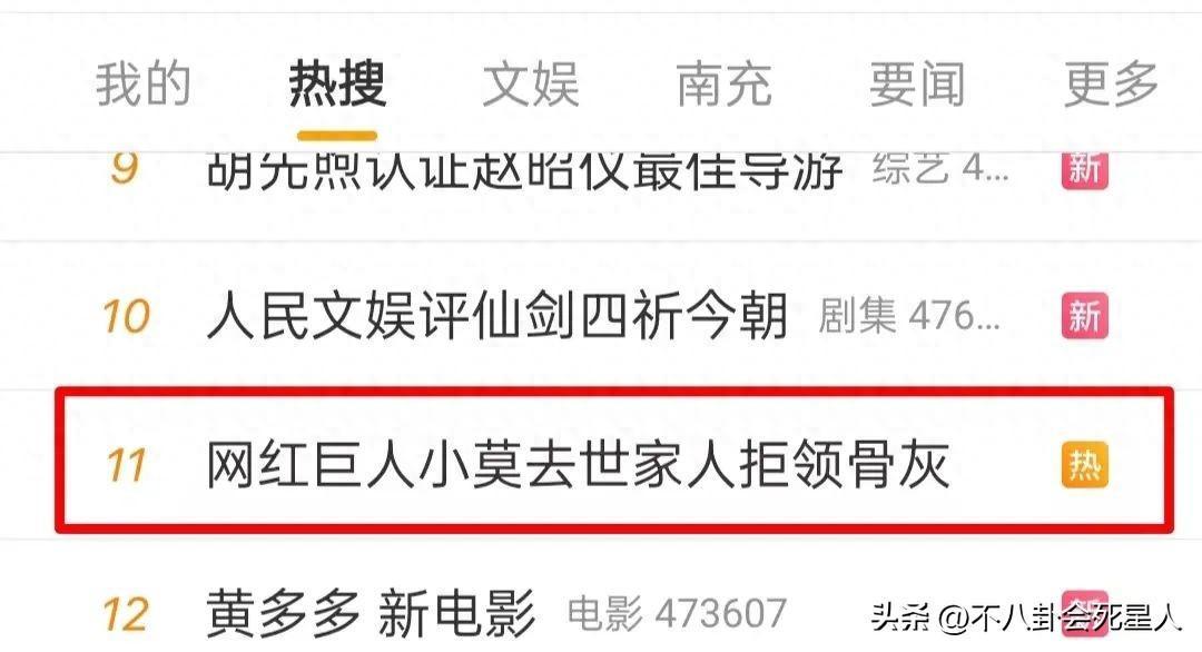 近日,網紅巨人小莫去世,家人拒領骨灰的事情,登上熱搜引起關注。
